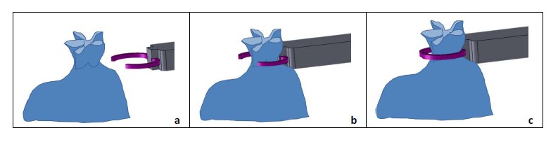 - Arm1 and Arm2 stretch the ring and engage it on the side of Arm2.